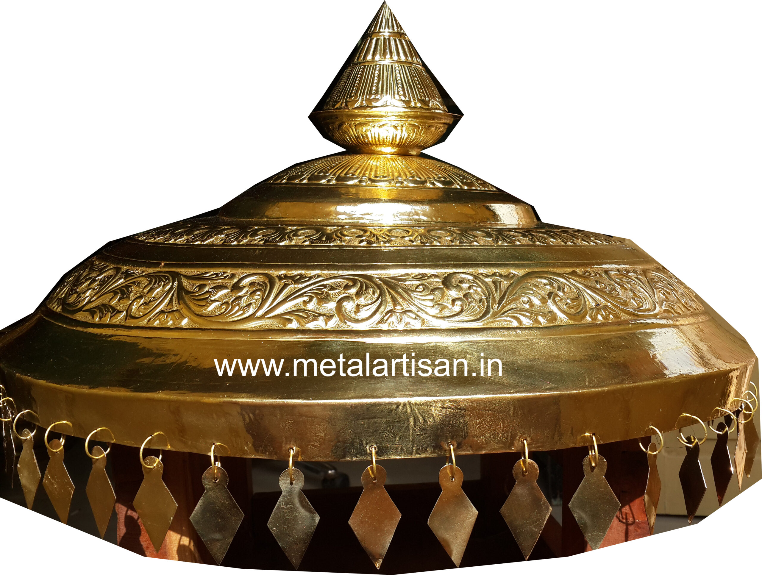 A finely handcrafted brass umbrella designed to be placed atop idols and deities, adding an elegant and spiritual touch to temples, pooja rooms, and altars.